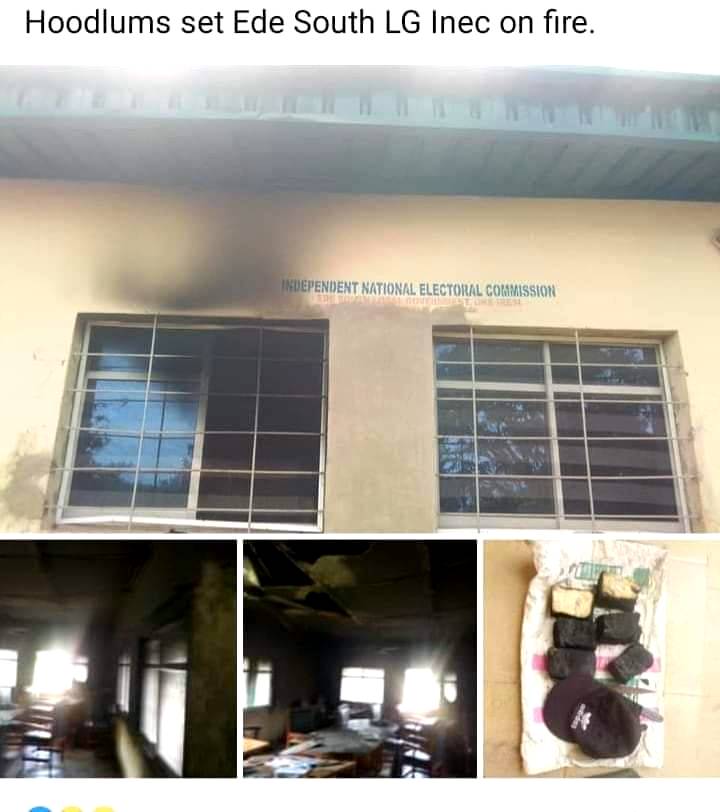 The Independent National Electoral Commission’s (INEC) office in Ede-South local government area of Osun state has reportedly been set on fire by suspected arsonists.